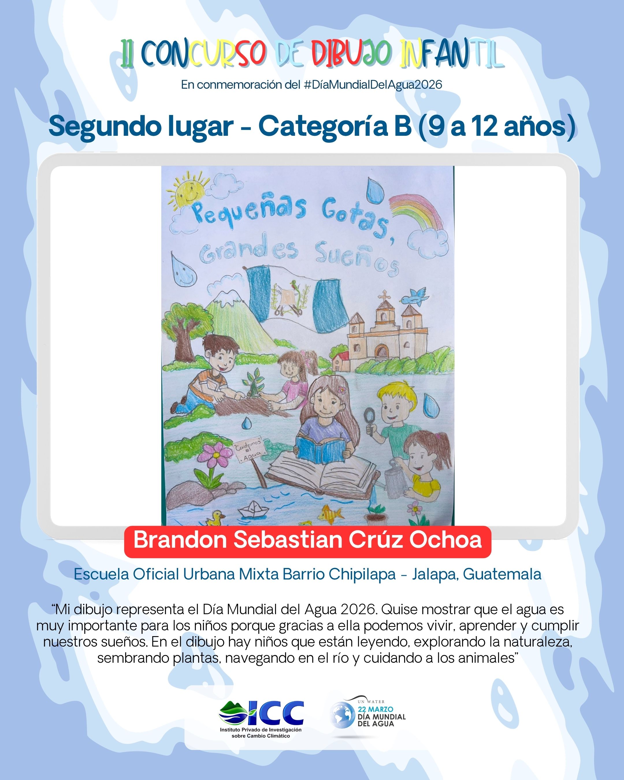 En conmemoración del Día Mundial del Agua, llevamos a cabo nuestra segunda edición del Concurso de Dibujo Infantil, una actividad que reunió a decenas de niñas y niños de Guatemala y El Salvador, quienes plasmaron con gran creatividad la importancia de proteger el agua.