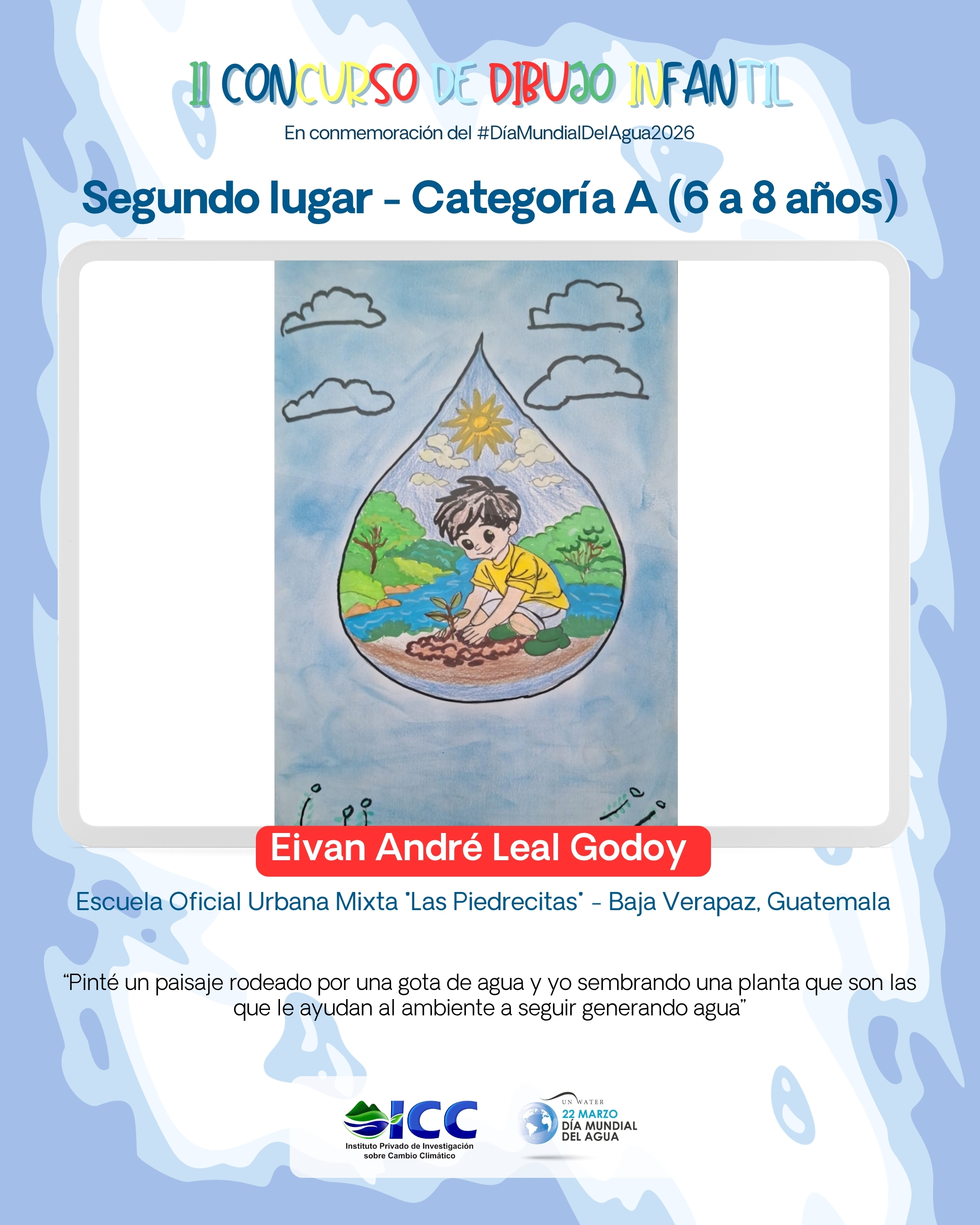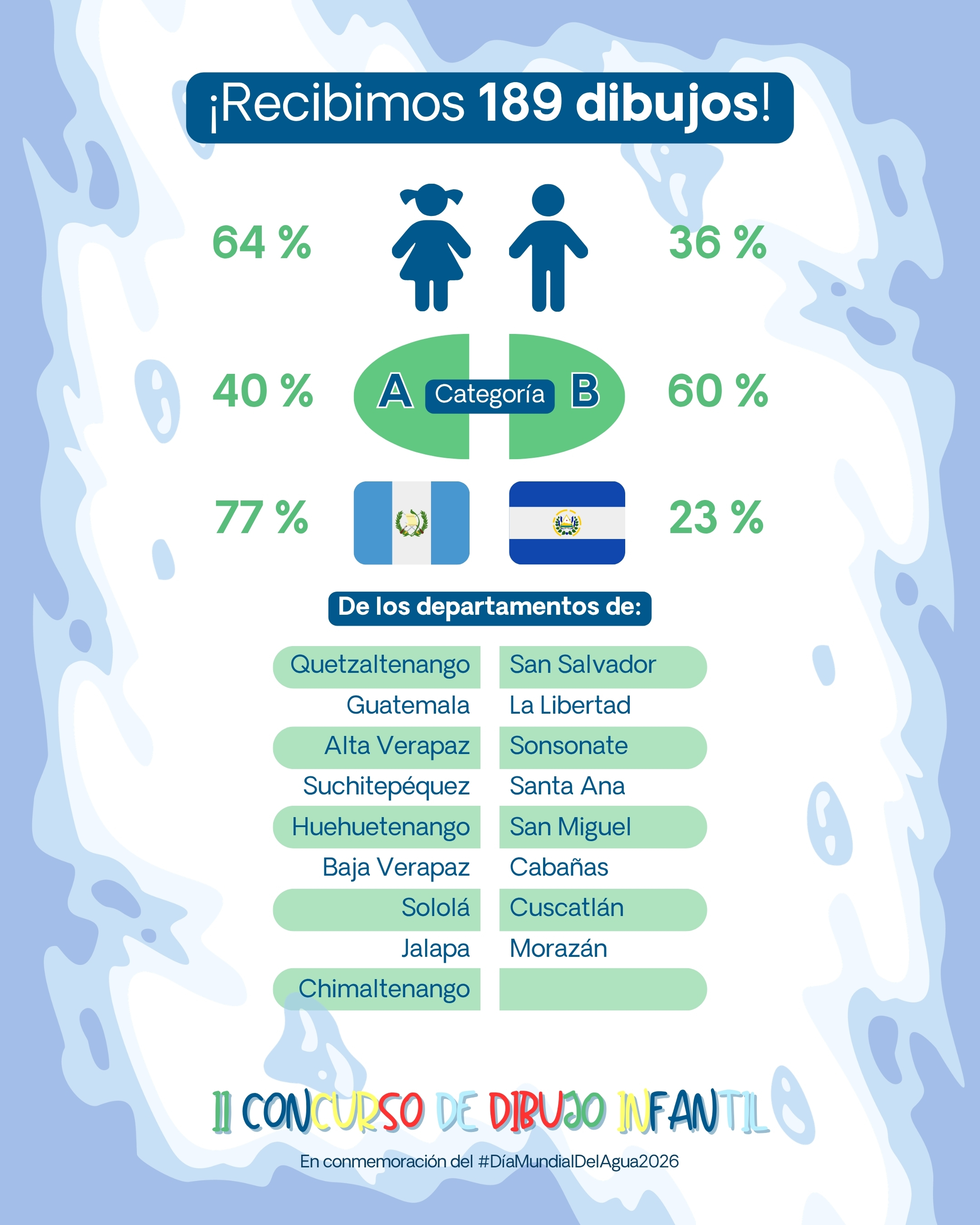 En conmemoración del Día Mundial del Agua, llevamos a cabo nuestra segunda edición del Concurso de Dibujo Infantil, una actividad que reunió a decenas de niñas y niños de Guatemala y El Salvador, quienes plasmaron con gran creatividad la importancia de proteger el agua.